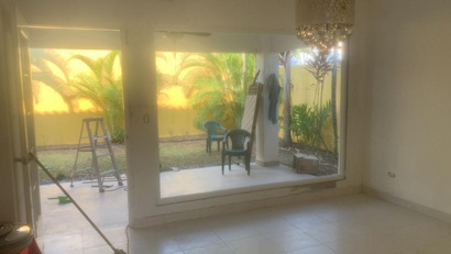 Colocación de vidrio en piscina exterior y aluminio en apartamento.